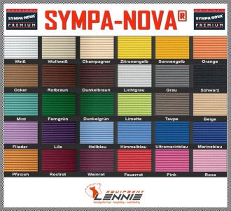 Zur Auswahl stehen 30 Farben SYMPA-NOVA®-Premium und geprägter PVC-Schaum in modischem Schwarz.